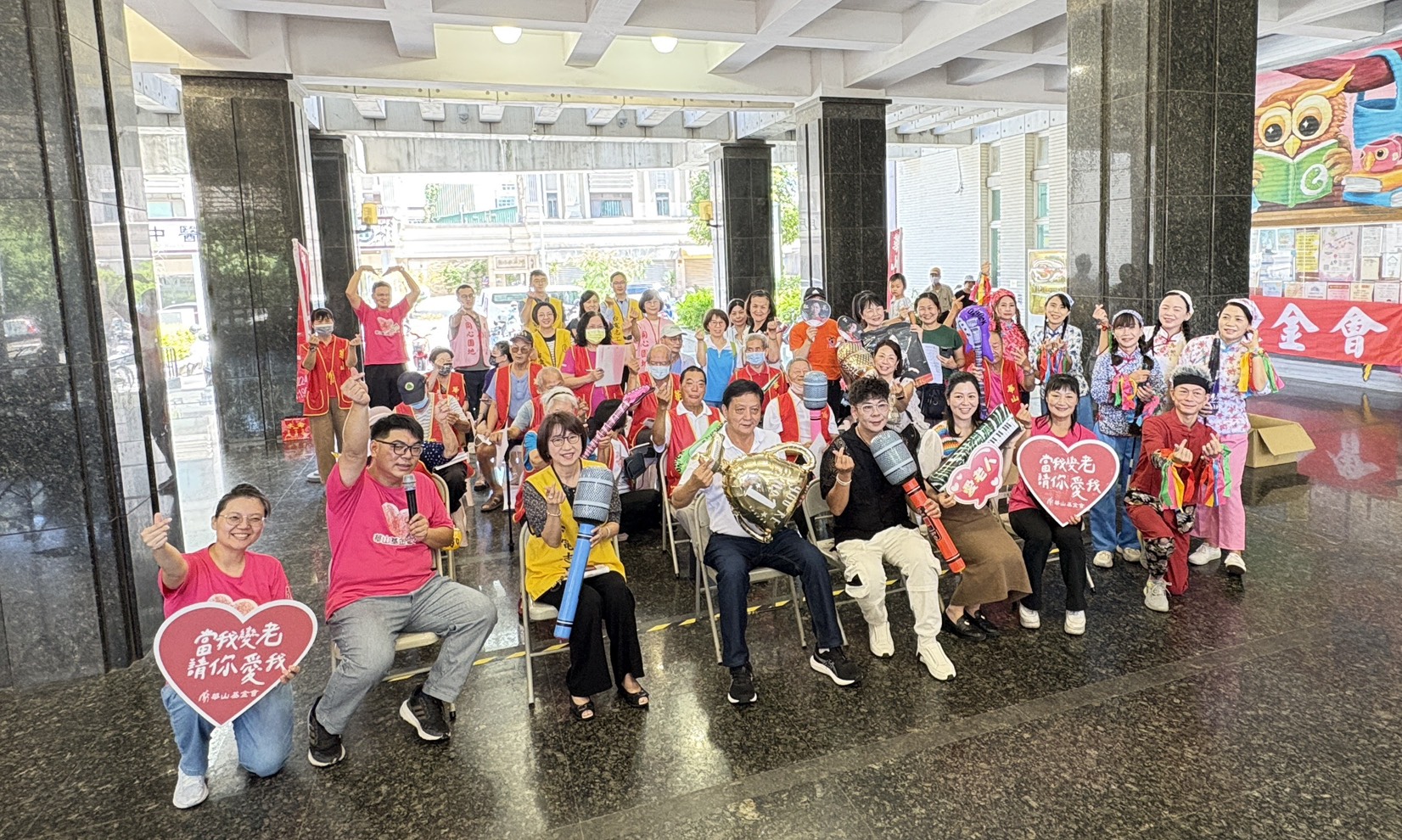 (特派員陳錦玲 南投報導) 華山基金會今(21)日於南投縣草屯鎮公所舉辦歌聲傳愛系列活動,特別邀請在地知名歌星教唱與示範,會中由草屯鎮長簡賜勝、台電南投區處業務副處長林玉芳與活動志工等人,一同與華山服務的長輩們投入學唱,現場歡笑聲此起彼落,好生熱鬧。華山草屯站長韓佩吟表示,希望透過音樂的力量,能喚起社會大眾對孤老議題的關注,同時盼能邀請更多善心人士加入關懷社會弱勢行列。