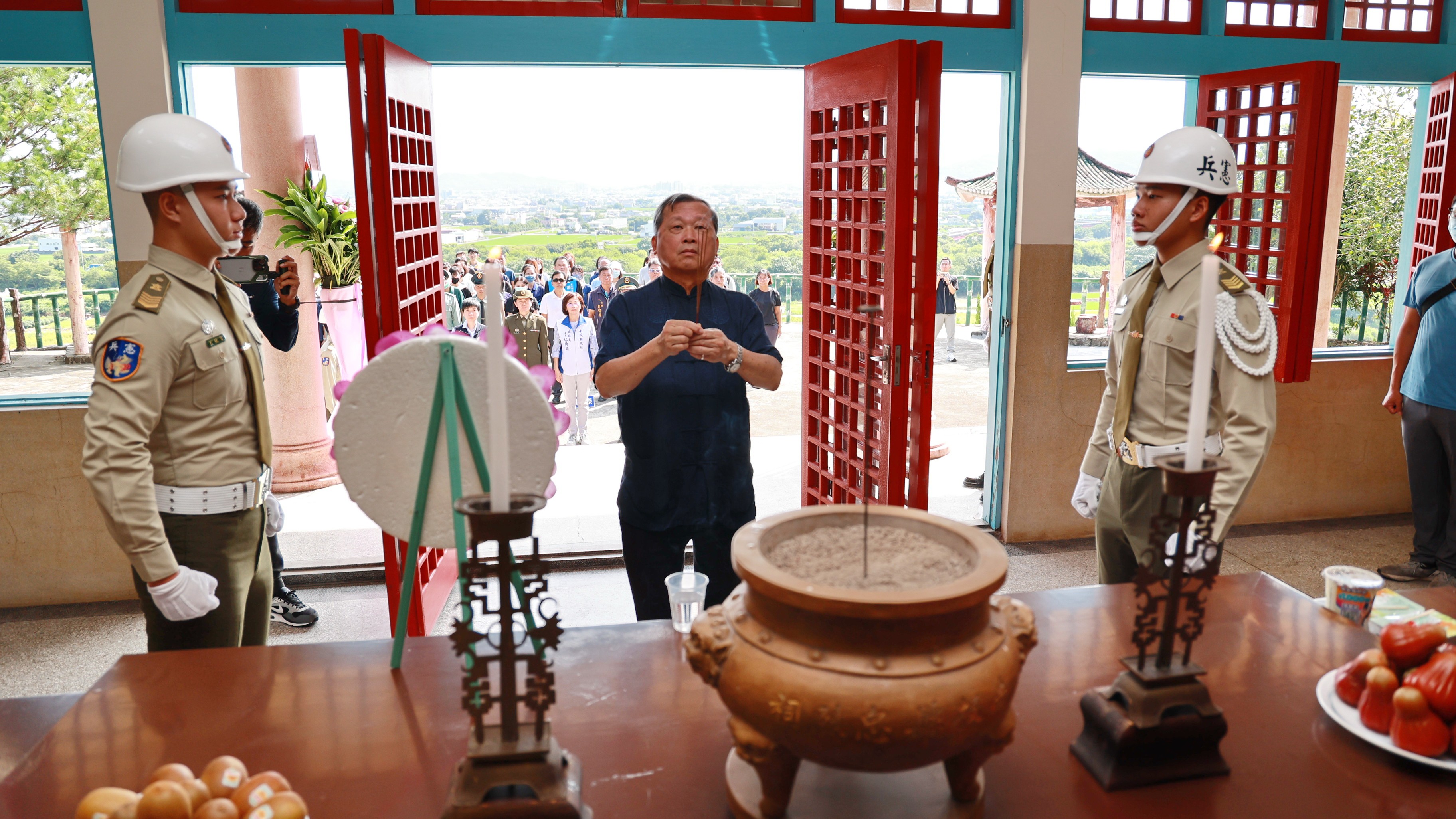 114年忠烈祠秋祭抗戰陣亡將士、殉難官民暨公祭本縣在營因公殉職戰士活動,莊嚴肅穆;忠烈祠內高高掛起縣長許淑華致敬輓聯「為國為民功垂史冊、大仁大勇氣壯山河」,向陣亡將士致敬。