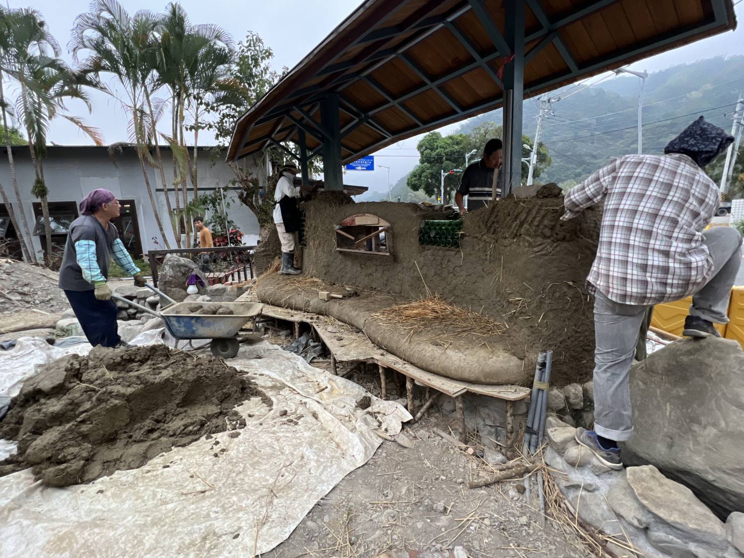 農村水保署臺南分署分署長柯燦堂補充說明,檨仔腳文化共享空間延續「與自然共生息」的友善理念,運用在地素材搭配傳統工藝投入改善。過去頹圮破損的古厝保留結構、補強活化,重現土埆磚牆面的樸實紋理;新設置的麵包窯及景觀黏土牆,則由陶藝家李懷錦老師攜手社區工匠,以逐層夯打的傳統工法細心砌築,傳遞手作溫度。另運用綠屋頂、火頭磚、自然草坪及透水混凝土等元素,改善棚架、走道及活動廣場,營造自然循環環境與友善步行動線,和諧展現文化融合風土的景觀美學。