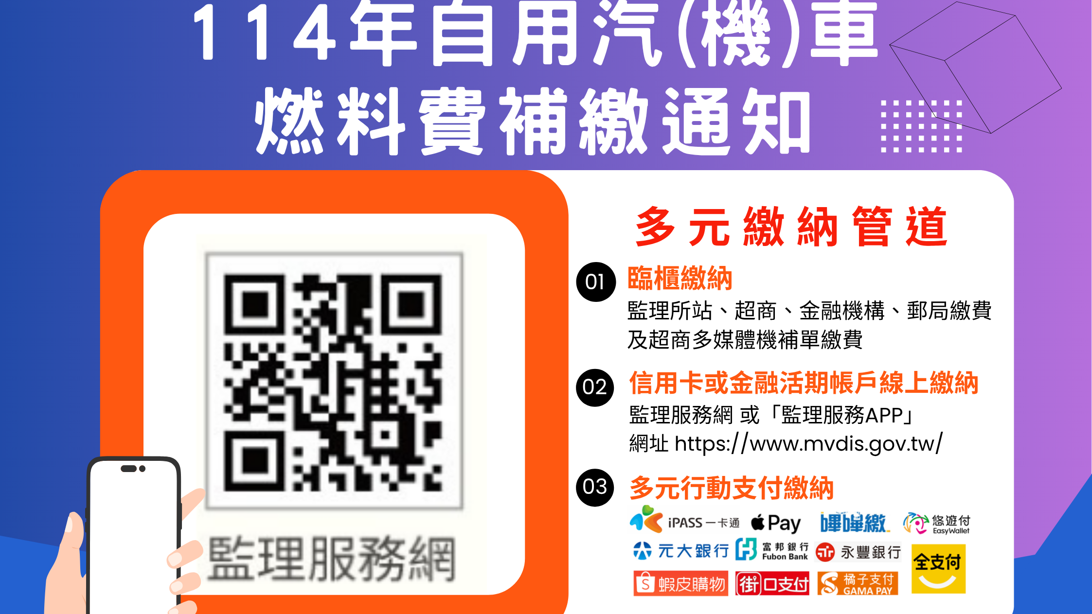 114年自用汽(機)車燃料費補繳通知單已寄出