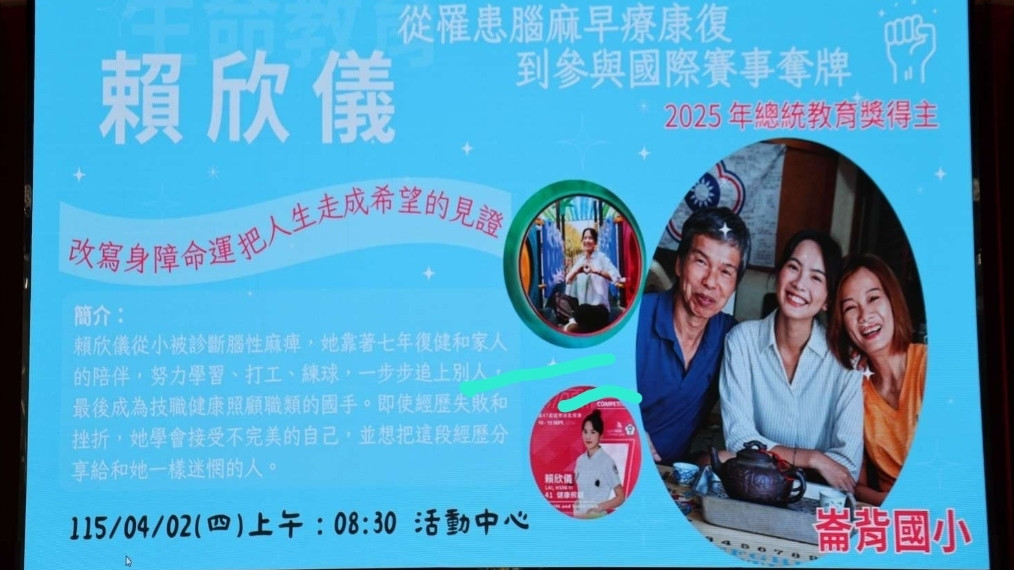 逆境中綻放光芒 賴欣儀生命故事感動雲林學子